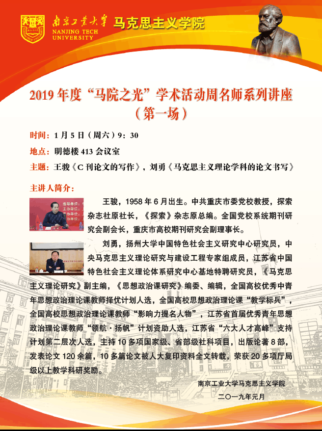 2019年度“马院之光”学术活动周名师系列讲座 (第一场)预告