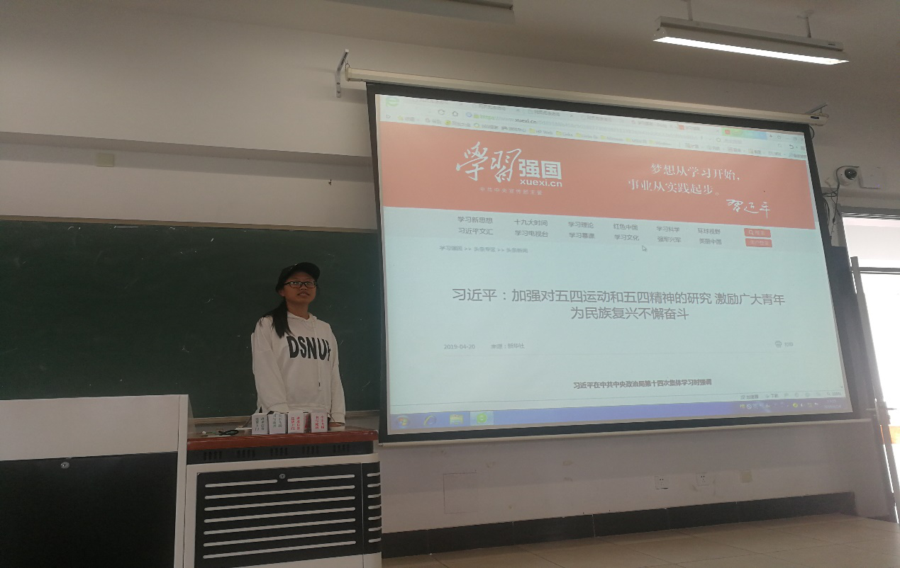 今年正值五四运动一百周年,中国近现代史纲要教研室的邱霖老师在本学期课堂教学中,要求员工详细了解五四运动的来龙去脉和历史细节,制作五四员工领袖的人物PPT并当堂讲解。在实践教学中,指导员工排演历史情景剧《五四风云》,让员工亲身体会一百年前,中国青年振臂高呼,为国奔走的激情。习近平总书记在中央政治局第十四次集体学习时讲话播出后,邱老师利用“学习强国”平台,在课堂上及时组织员工学习讨论,重温历史,鞭策激励员工要以五四精神为指引,增强爱国奋斗本领。