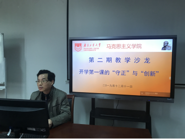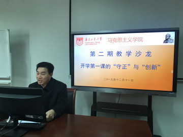 12月11日上午举行第二阶段的教学沙龙,首先进行的是思政主干课“开学第一课”说课展示。概论教研室主任张秀勤老师、原理教研室主任权良媛老师、基础教研室秦艳老师和纲要教研室赖继年老师分别以“《毛泽东思想和中国特色社会主义理论体系概论》开学第一课的‘守正’与‘创新’”、“《马克思主义基本原理概论》开学第一课探初心、悟使命”、“《思想道德修养与法律基础》开学第一课的‘守正’与‘创新’”以及“《中国近现代史纲要》开学第一课‘守正’与‘创新’之传声定音的导言”为题,做了精彩的展示与分享。与会老师纷纷表示,通过这样的分享,各教研室就课程定位、课程体系、课程教学重点、教学内容设计、实践教学安排和课程考核等方面有了更加清晰的认识,更加深了四门思政主干课教研室之间的沟通交流,为今后协同共进,发挥课程特色起到了推动作用。