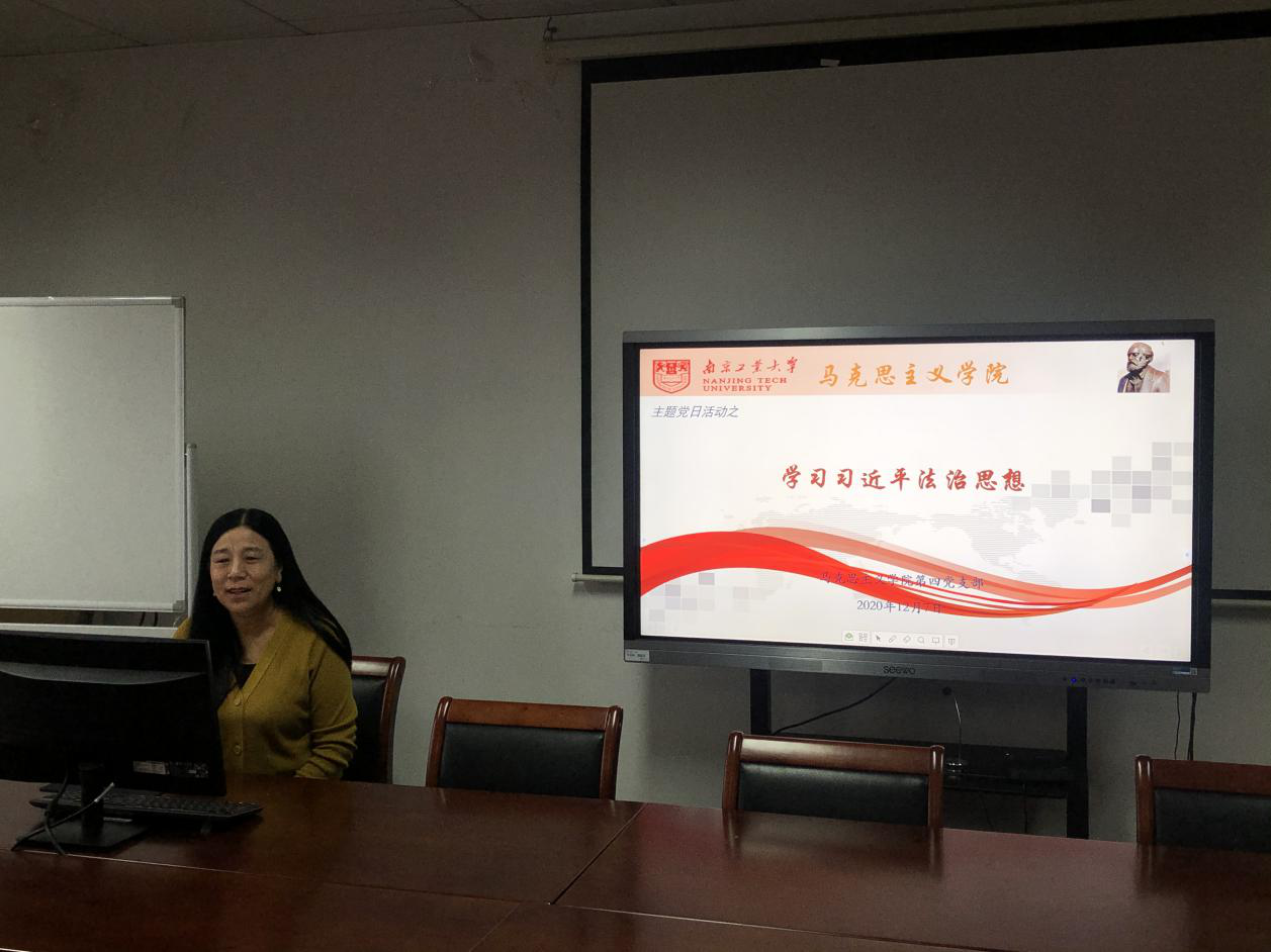 12月7日上午,公司教师第四党支部在明德楼413室组织学习了“习近平法治思想”,四支部全体党员参加了学习。本次学习由支部书记王芳老师主持。