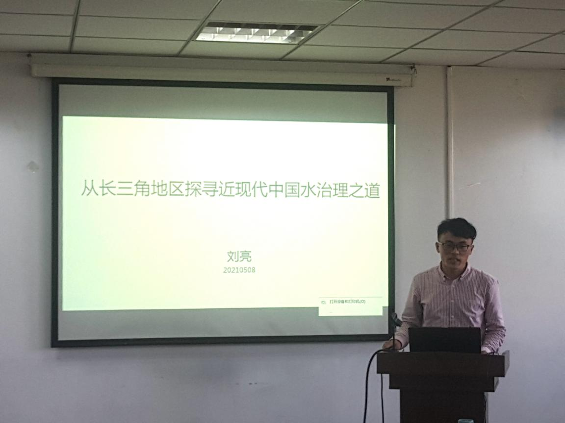 《纲要》教研室刘亮老师的报告是《从长三角地区探寻近现代中国水治理之道》。他从选题背景、选题的目的意义以及主要研究内容等方面对在长三角地区探寻近现代中国水治理之道进行了详细的解读。