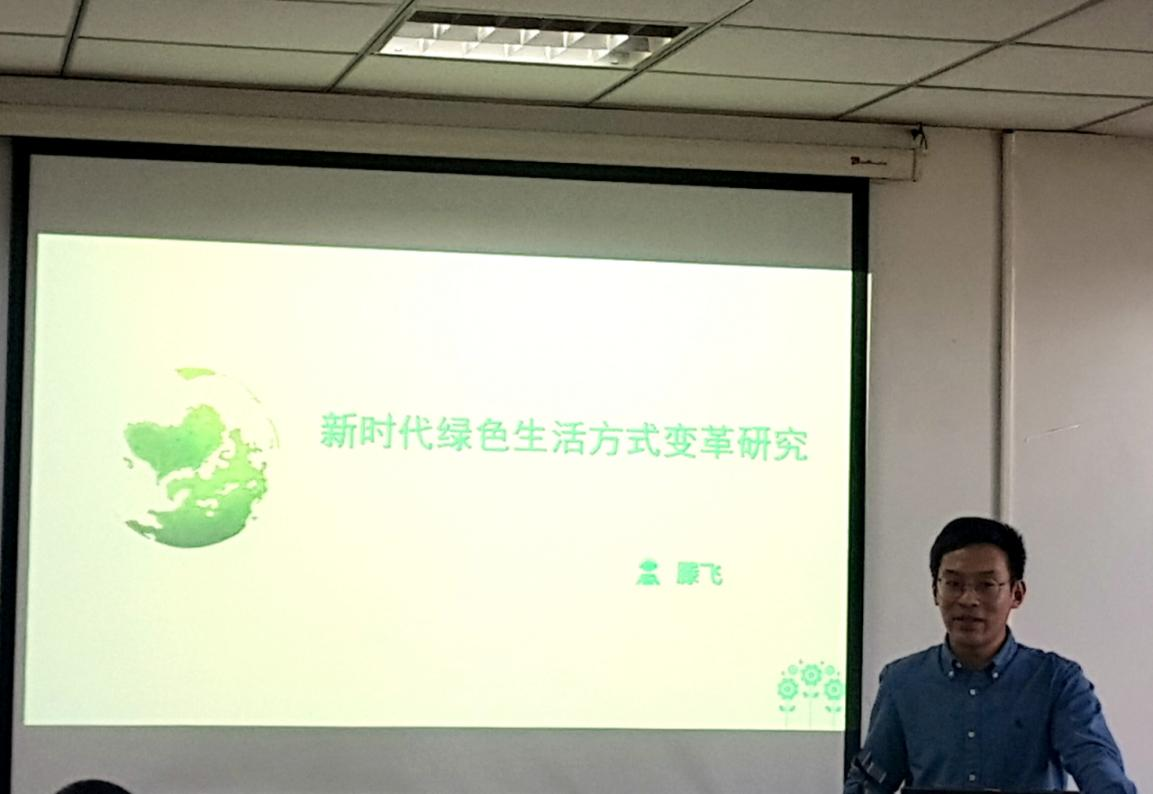 《基础》教研室滕飞老师的报告是《新时代绿色生活方式变革研究》。他从新时代绿色生活方式变革的时代背景、实现绿色生活方式变革的必要性,以及从马克思主义社会学视角探讨了生产方式和生活方式的关系。