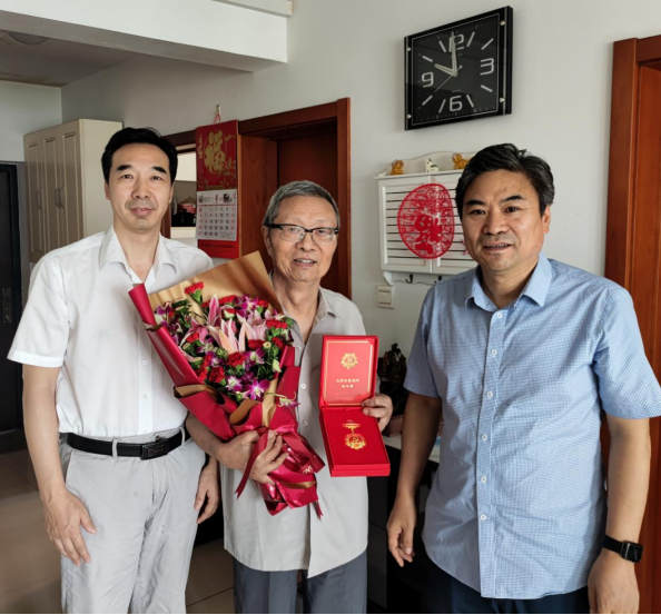 在中国共产党建党100周年来临之际,6月25日上午,公司党总支书记张振海,经理、党总支副书记眭国荣一行走访慰问了公司退休老党员施汉城同志,并颁发“光荣在党50年”纪念章。