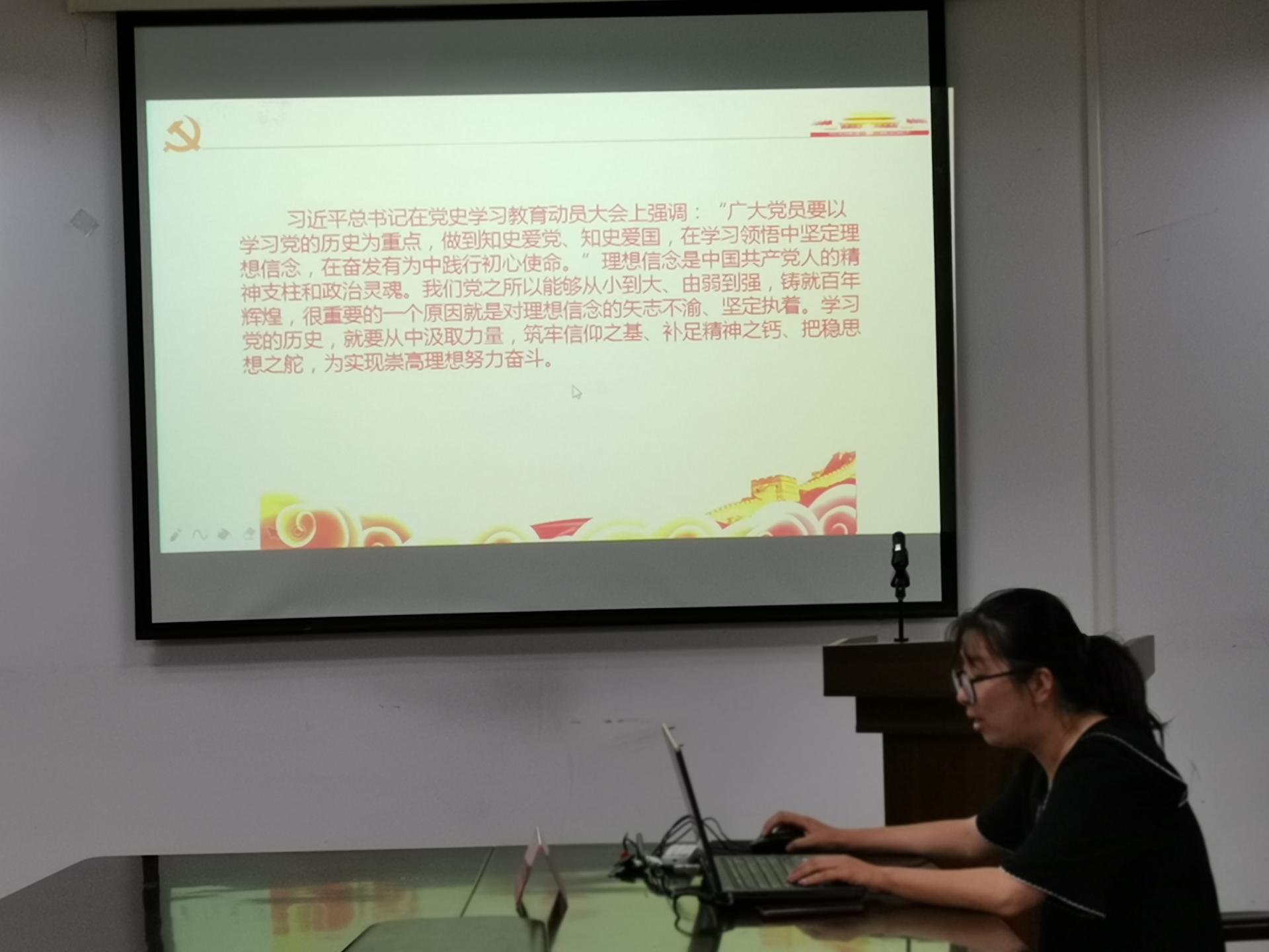在本次学习中,首先,赵亚丽同学带领党支部全体党员梳理了中国共产党百年以来带领中国人民进行革命、建设与改革的光辉历程,使党员们懂得新中国来之不易、今天的幸福生活来之不易。接着,赵亚丽同学援引习近平总书记在党史学习教育动员大会上的讲话,号召全体党员知史爱党、知史爱国,并强调理想信念是中国共产党人的精神支柱和政治灵魂。最后,赵亚丽同学带领全体党员学习了习近平总书记在考察青海时的讲话,使全体党员切实感受到在党中央的坚强领导下,以青海等西部地区的经济、政治、社会、文化、生态等各领域的发展已取得了长足的进步,增进了党员们对中国共产党以及以习近平同志为核心的党中央的衷心拥护。