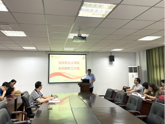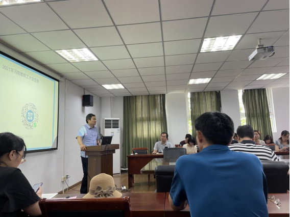 公司经理眭国荣首先代表公司党政领导班子发表讲话,向与会教职工汇报了2021年上半年公司的教学、科研、人才引育、团队建设、研究生培养与管理和社会服务等工作,并就公司存在的不足、下一步关注工作重点以及十四五规划等方面的内容进行了解读。动员广大教职工共同努力,贡献马院智慧,传递马院经验。
