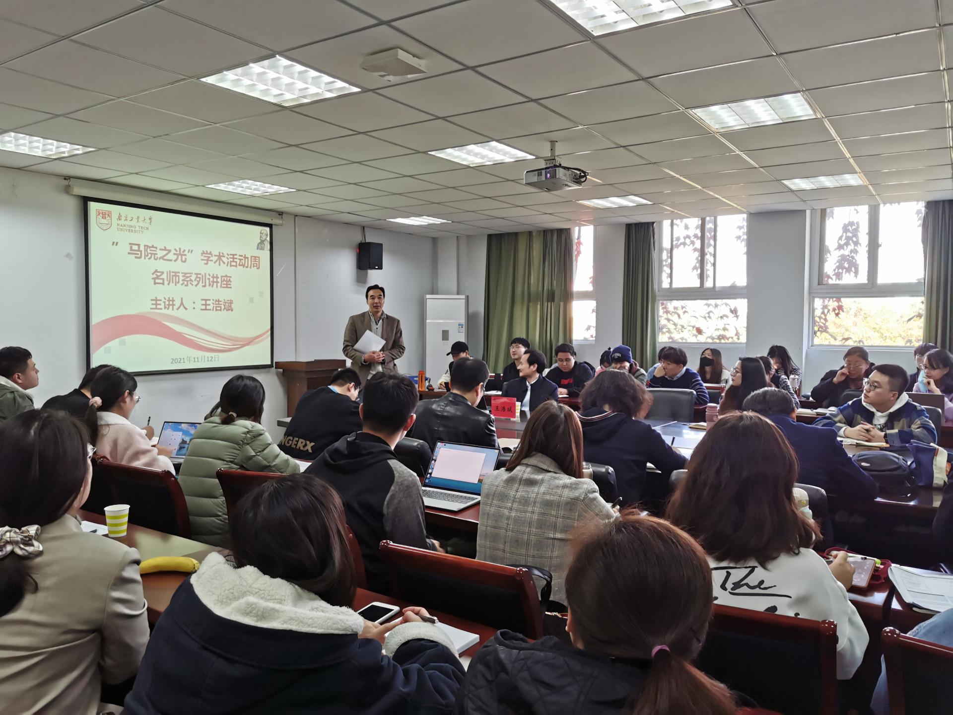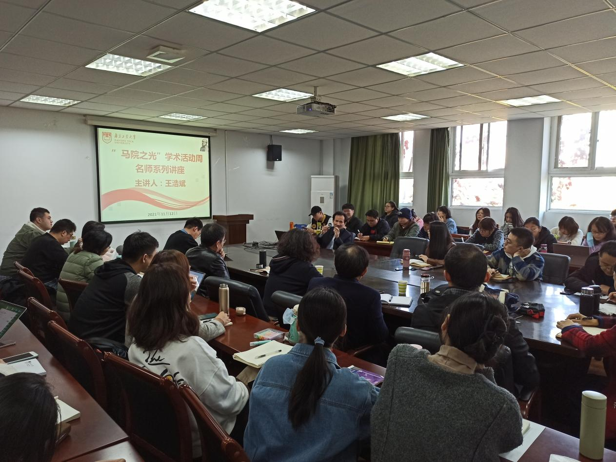 2021年11月12日下午,南京大学太阳成城集团tyc234cc官网王浩斌教授应邀于明德第二会议室为公司全体师生进行了《体系到学科—深化马克思主义基本原理的路径与方法》主题讲座,讲座由经理眭国荣主持。