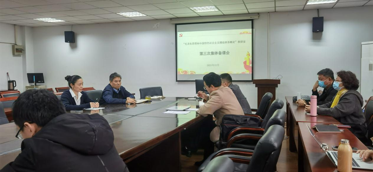 2021年11月17日,在公司统一部署下,《概论》教研室召开本学期第三次集体备会。本次集体备课会的主题主要包括本学期的实践教学改革与落实情况、教学展示和推动十九届六中全会精神进课堂。首先,张书记对如何推动实践教学改革以及如何保证高质量完成作出指导。张书记指出,党和国家强调重视思政课,公司和公司也大力支持思政课的教学改革。针对实践教学难点问题,张书记鼓励老师要集思广益,要勇于联系员工所在公司,与员工专业课相结合,深化实践教学,做出特色,做出亮点。第二,史坤坤进行了教学展示,其中如何处理教学重点、难点以及教学设计思路获得大家的好评和认同。最后,王焕成就如何推动十九届六中全会精神进课堂做了说明。全体与会老师对实践教学方式方法以及十九届六中全会精神进行热烈讨论,收获颇丰。
