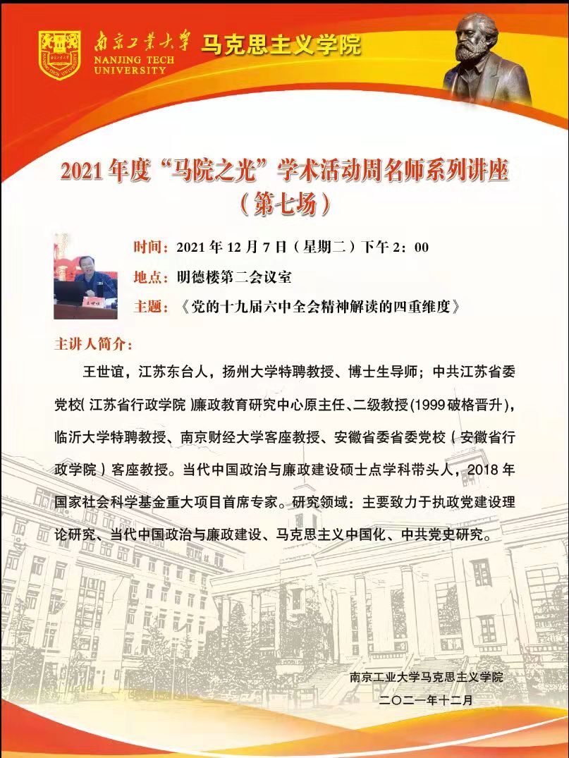 2021年度“马院之光”学术活动周名师系列讲座 (第七场)预告