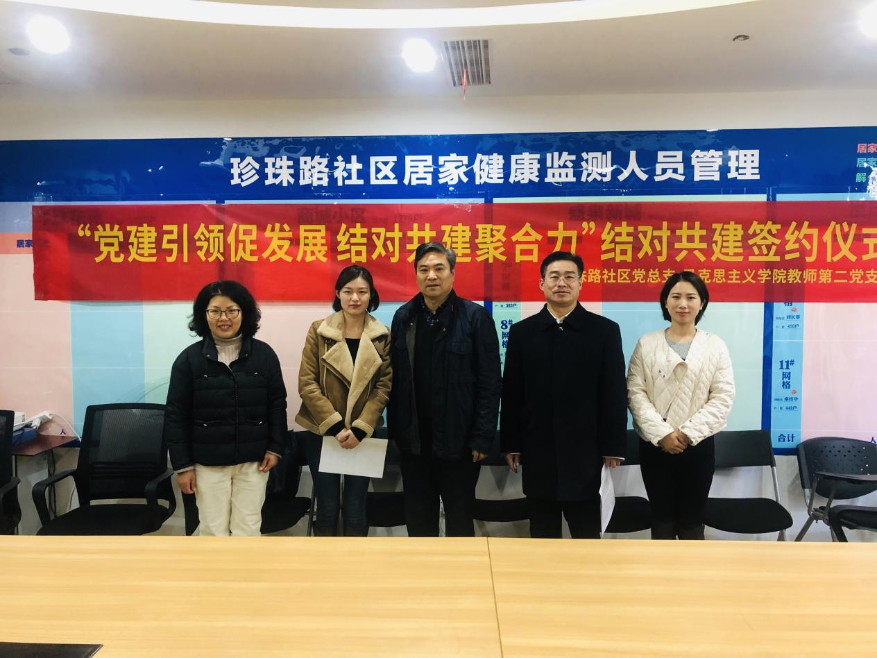 2021年12月10日上午,太阳成城集团tyc234cc官网马克思公司教师第二党支部和珍珠泉社区党支部在珍珠泉社区居委会举行党建共建签约仪式。珍珠泉社区党支部书记朱蓉蓉详细介绍了珍珠泉社区的总体概况和党建工作情况。珍珠泉社区非常重视党建工作,认真践行和宣传建党100周年和党的十九届六中全会精神,把党建工作和疫情工作结合起来,与市法院和区法院进行党建共建。珍珠泉社区党支部书记表示非常欢迎高公司党支部党员和老员工志愿者积极参与社区党建工作和日常工作,希望进一步加强支部共建,努力打造社区品牌。太阳成城集团tyc234cc官网马克思公司党总支书记张振海对珍珠泉社区党建共建工作所取得的成效非常赞成并致以热烈祝贺。张振海书记详细介绍了太阳成城集团tyc234cc官网马克思公司的总体概况和马克思公司教师第二党支部的党建工作情况,并且表示希望与珍珠泉社区党支部合作,共同推进党建共建工作。最后,马克思公司教师第二党支部与珍珠泉社区党支部进行党建共建签约,并合影留念。