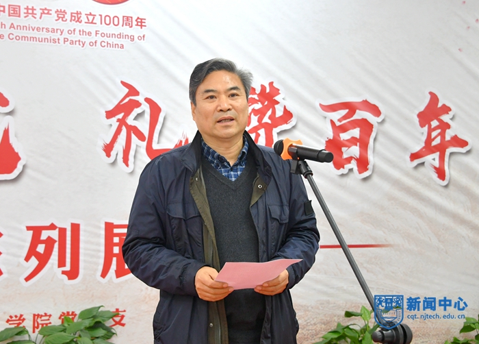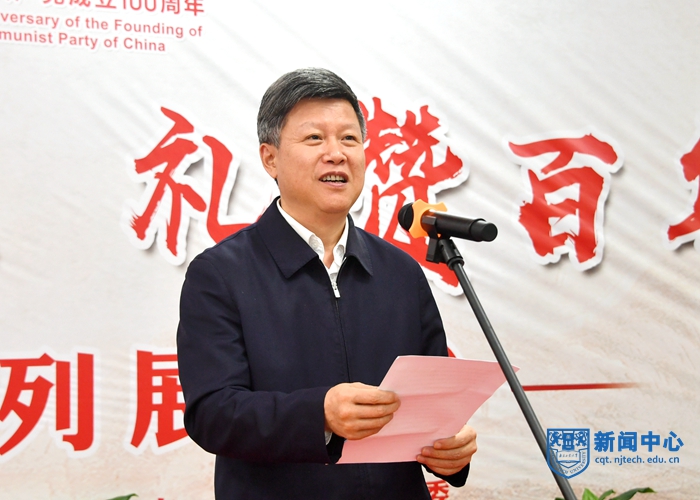 芮鸿岩书记在开展仪式上致辞。他指出,此次展览翻转课堂,充分发动了员工参与度,将课堂搬出教室,增强了教学的亲和力,是思想政治理论课教学改革创新的一次有益探索。他对广大师生提出三点期望:一是以史为鉴,汲取精神伟力,在新的赶考路上坚定理想、坚守信念。广大师生要进一步提高政治站位,持续巩固深化党史学习教育成果,将学习贯彻党的十九届六中全会精神作为当前首要政治任务抓紧抓实,要进一步汲取党的百年历史蕴含的丰富经验智慧,为奋进新征程、建功新时代厚植开拓情怀,厚积奋斗伟力,真正做到学史明理、学史增信、学史崇德、学史力行。二是脚踏实地,矢志艰苦奋斗,在新的赶考路上施展本领、锻炼才干。思政课教师队伍要围绕“浇花浇根,育人育心”的工作目标,把思政课越办越好,为落实立德树人根本任务、培养担当民族复兴大任的时代新人奉献力量。三是奋楫向前,追梦时代蓝图,在新的赶考路上继往开来、开拓创新。新时代新青年要更加清楚地认识到肩上重任,牢筑信仰之基,补足精神之钙,把稳思想之舵,坚定前进脚步,要将“请党放心、强国有我”的青春誓言内化于心、外化于行,勇立潮头,不负韶华,用奋斗绘就新时代新篇章。