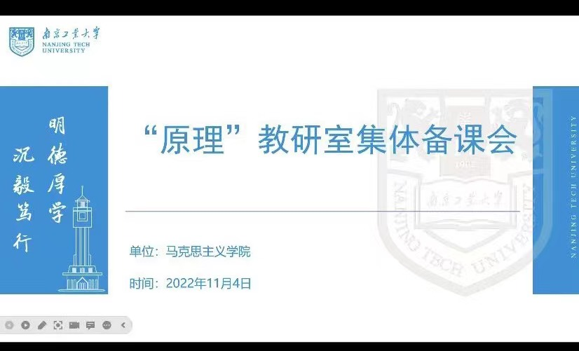 2022年11月4日,在公司统一工作部署下,马克思主义基本原理教研室全体教师进行了本学期第二次线上集体备课会。副经理陶然出席备课会。