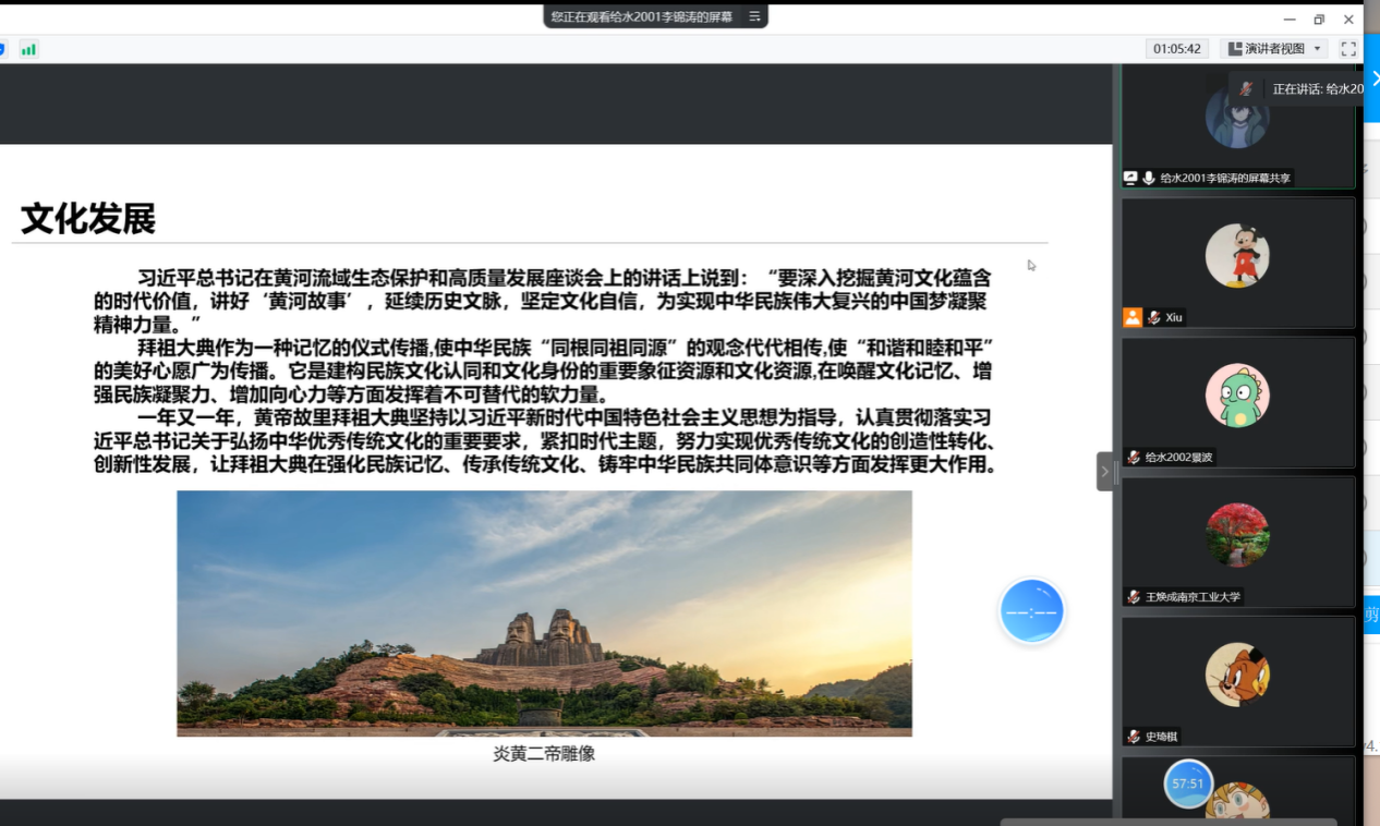 2022年12月11日,在公司统一工作部署下,《概论》课教研室进行线上实践教学展示暨优秀教学案例遴选活动。本学期,概论教研室及时地把党的二十大精神融入到教学之中,开展以“我眼中的新时代10年的家乡伟大变革”为主题的实践教学活动,引导员工深入认识新时代10年的伟大变革及其重大意义。本次共遴选出18份实践作品参加展示,分上下半场。上半场由张秀勤主持,孙千惠、李永点评,下半场由王焕成主持,朱嫣丹、王巍点评。所有任课教师及员工代表参加了展示。