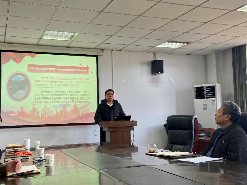 各教师党支部书记分别按照习近平总书记提出的“五个牢牢把握”要求,围绕党的二十大精神的丰富内涵、核心要义和实践要求进行选题:教师第二支部书记王焕成以《新时代新征程中国共产党的使命任务》为题;教师第三支部书记赖继年以《中国式现代化提出的深刻背景、含义与重大原则》为题;教师第五支部书记汤洁以《推进文化自信自强,铸就社会主义文化新辉煌》为题;教师第一支部书记宗元勇以《新征程坚持和发扬斗争精神》为题分别进行微党课展示汇报。最后,根据与会评审意见,决定推荐教师第二支部书记王焕成、教师第三支部书记赖继年参加校级复赛环节。