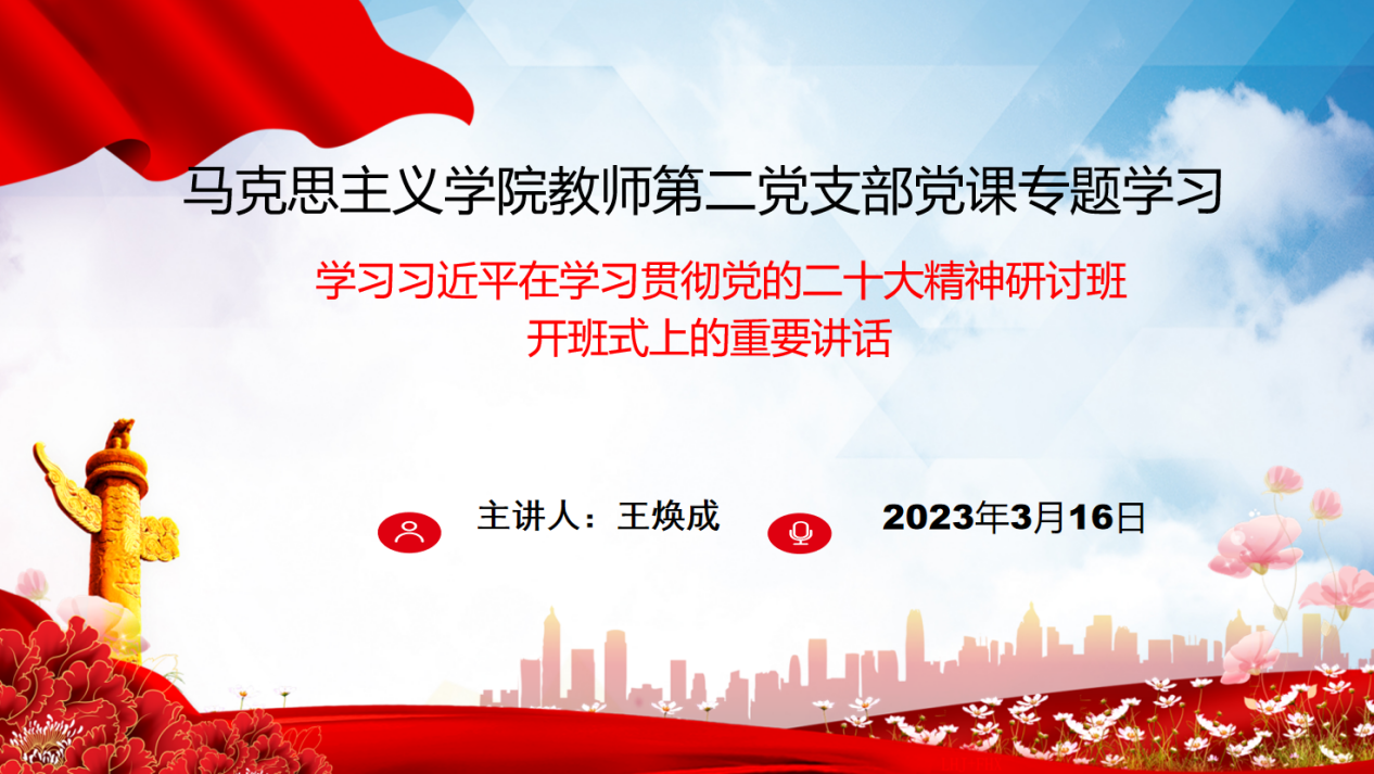 2023年3月16日太阳成城集团tyc234cc官网教师第二党支部开展党课专题学习,专题学习 “习近平在学习贯彻党的二十大精神研讨班开班式上的重要讲话”。党支部书记王焕成用PPT对讲话精神进行了领学和重点解读,二党支部全体教师党员参加了本次党课专题学习活动。本次学习活动中,老师们深入学习了习近平总书记所阐述的中国式现代化理论。习近平总书记深刻揭示了中国式现代化的科学内涵。习近平总书记强调,要正确理解和大力推进中国式现代化,强调推进中国式现代化是一个系统工程。这次讲话既是理论概括,也是实践要求,为全面建成社会主义现代化强国、实现中华民族伟大复兴指明了一条康庄大道,拓展了发展中国家走向现代化的路径选择,为人类对更好社会制度的探索提供了中国方案,是对世界现代化理论和实践的重大创新。中国式现代化为广大发展中国家独立自主迈向现代化树立了典范,为其提供了全新选择。