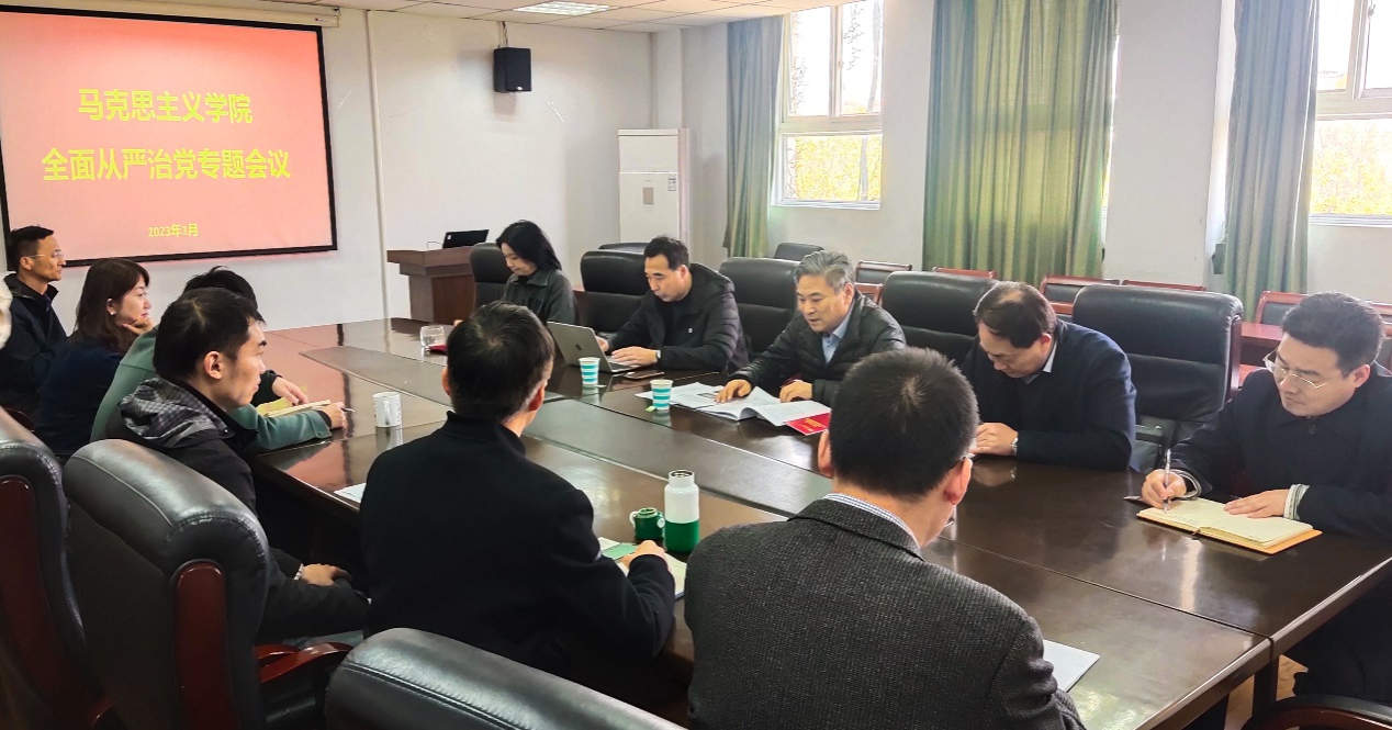 为深入学习贯彻公司2023年全面从严治党暨警示教育大会精神,统筹推进公司全面从严治党工作,3月30日下午,公司在明德楼第二会议室召开全面从严治党专题会议,会议由公司党总支书记张振海主持,公司领导班子成员、教师党支部书记、各教研室主任、专职组织员及相关人员参加会议。