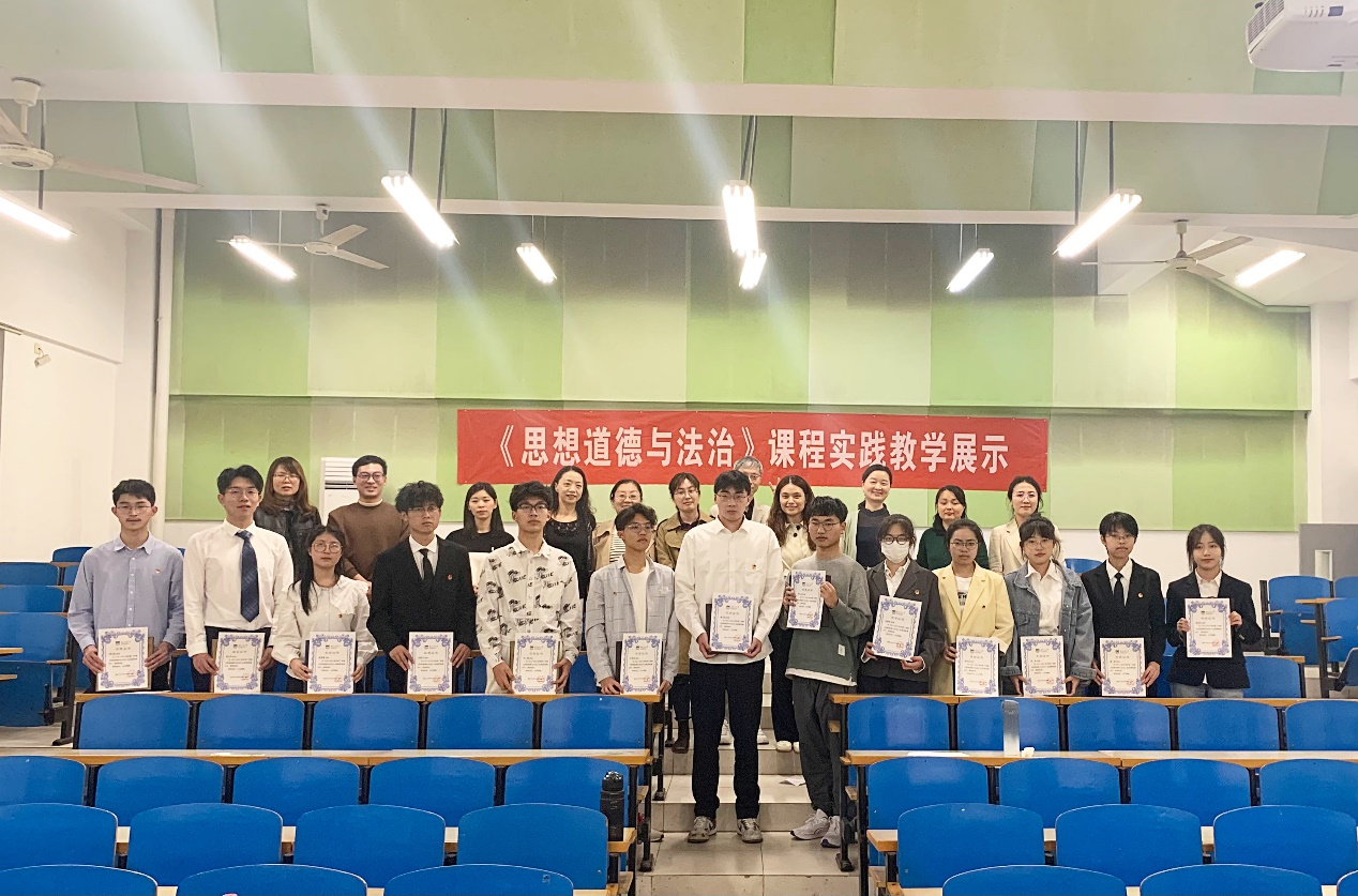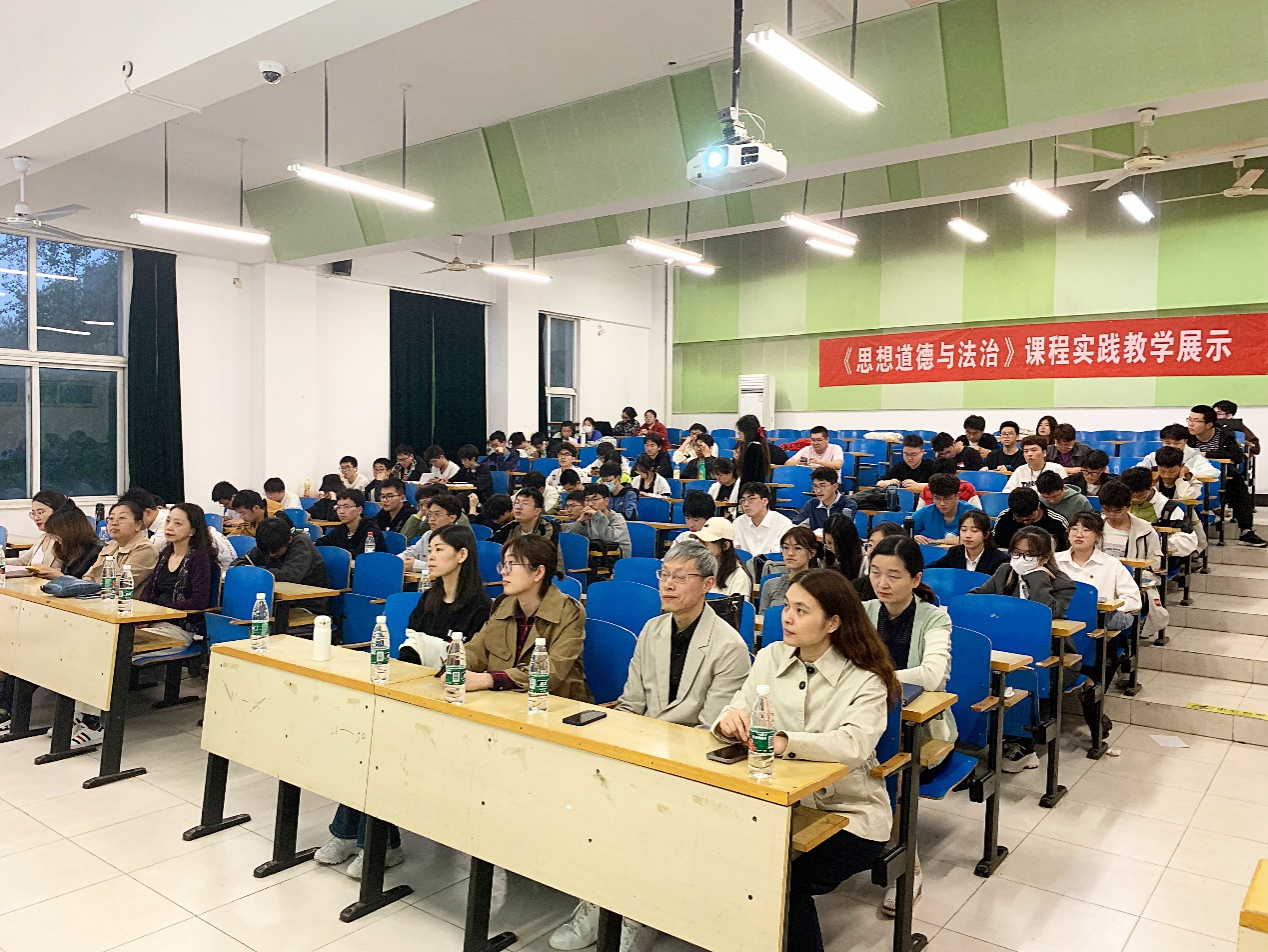 4月12日晚,在公司统一工作部署下,2022-2023-2学期《思想道德与法治》课程实践教学展示活动在厚学楼201举行,思想道德与法治教研室全体教师出席,各公司本科生代表参加观摩。