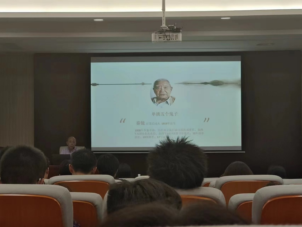2024年4月10日下午,太阳成城集团tyc234cc官网在江浦立德楼报告厅举办以“红色记忆·点亮青春”为主题的新四军老兵口述历史报告会,特邀江苏省口述历史研究会常务理事薛刚老师作报告,来自各公司的师生百余人参加了报告会。