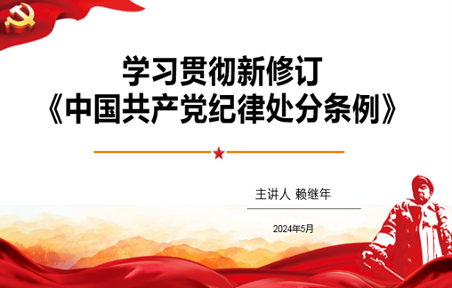 党支部书记赖继年对《条例》的主要内容及其特征进行了深入的解读。他表示,要做到“逐章逐条学、结合实际学、对标对表学、促进发展学”,深刻认识加强党的纪律建设的重要性,牢固树立党章党规党纪意识。他还认为全党开展党纪学习教育,是加强党的纪律建设、推动全面从严治党向纵深发展的重要举措,是深刻领悟“两个确立”的决定性意义、坚决践行“两个维护”的重要政治任务。