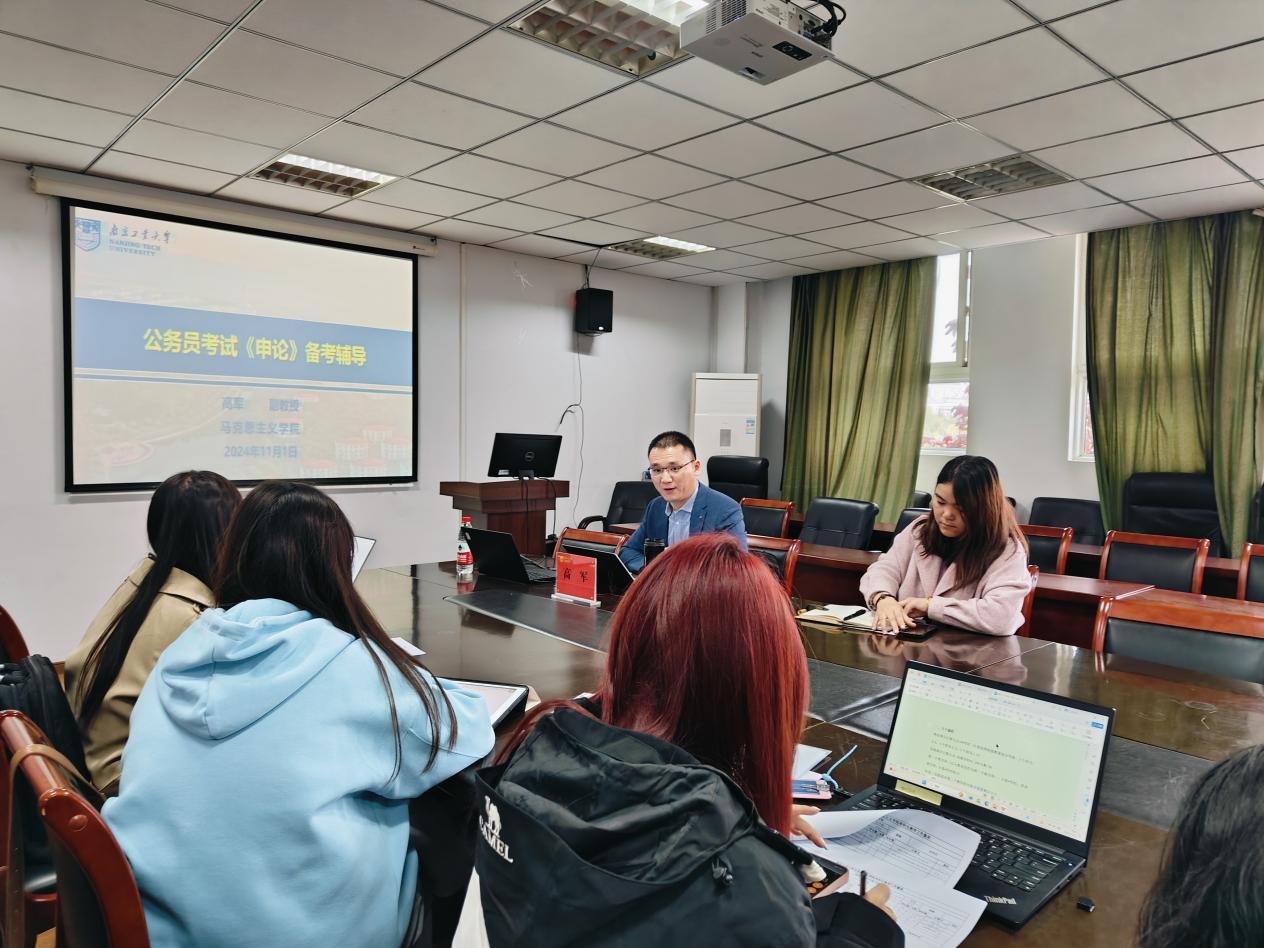 为进一步增强毕业生就业意识,切实加强公司就业指导与服务工作,11月1日上午,公司在明德楼第二会议室开展2024-2025学年第一学期硕士研究生就业指导及公务员考试备考辅导会。高军老师及公司2022级研究生参加会议,会议由研究生兼职辅导员何云梦老师主持。