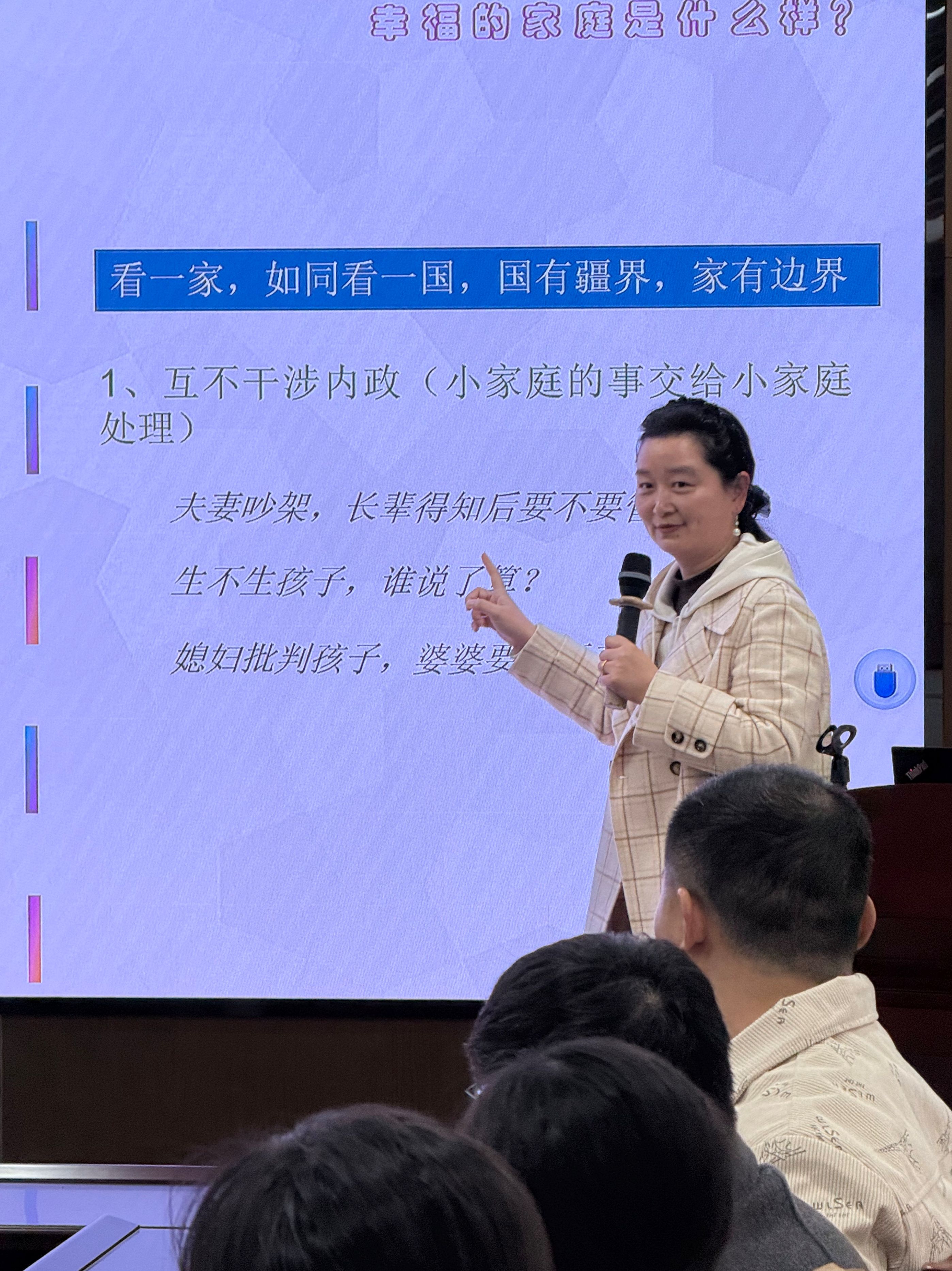 此次活动邀请了公司国家二级心理咨询师、国家三级婚姻家庭咨询师杨瑾老师担任主讲嘉宾。活动现场座无虚席,教师们怀着对家庭沟通艺术的浓厚兴趣参与到此次交流活动里。杨瑾老师凭借丰富的专业知识与生动的实践案例,深入阐释了幸福家庭中沟通艺术的奥秘。从夫妻之间的相互理解与包容,到亲子之间的有效交流与情感传递,引导大家重新思考并践行科学的家庭教育理念和方法。在交流互动环节,教师们纷纷分享自己在家庭沟通中的经验和困惑。