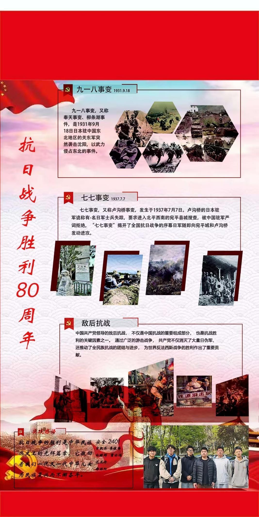 红色基因是党带领民众在百年艰苦奋斗凝练出的传家之宝,将红色基因融入思政课堂,对于培养员工家国情怀、厚植爱国主义情操意义非凡。公司以中国特色社会主义取得的重大成就和抗战胜利八十周年为主题,由本教研室指导一百多个授课班级共三千多名员工,根据所学知识,历时一个学期,从改革开放新时期和中国特色社会主义新时代两大阶段,选取具有代表性的政治、经济、文化、外交等各领域代表性成就,还有对八十多年前的抗战进行的全方位、多角度创新型呈现,辅以触摸历史的灵魂拷问,共完成数百块图文并茂的展板,经过各位老师严格审核,遴选出一百余块获奖作品参展。