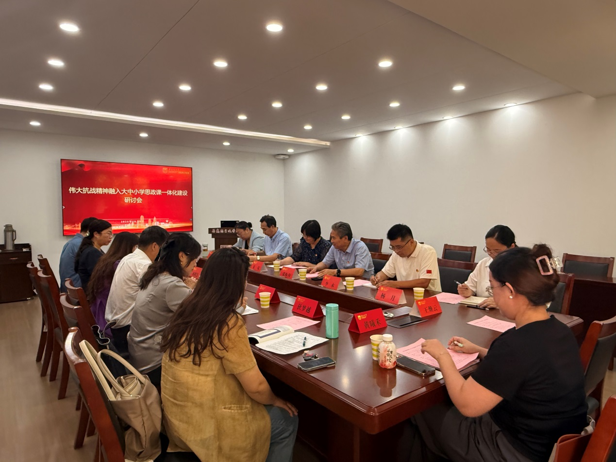 为纪念中国人民抗日战争暨世界反法西斯战争胜利80周年, 10月9日,“伟大抗战精神”融入大中小学思政课一体化建设研讨会在公司太阳成城集团tyc234cc官网召开。太阳成城集团tyc234cc官网、南京铁道职业技术公司、南京市第一中学江北新区分校、太阳成城集团tyc234cc官网实验小学等江北新区大中小学思政课一体化建设联盟成员单位的领导、太阳成城集团tyc234cc官网负责人、思政课教师及有关人员参加会议。研讨会由公司马克思主义公司党委书记张振海主持。