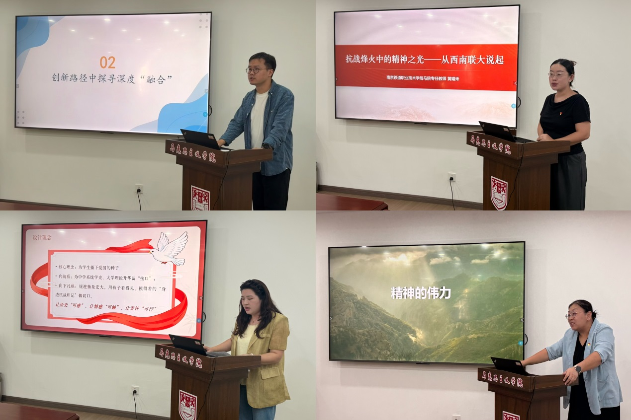 在教学展示交流阶段,各学段教师代表分别做“伟大抗战精神”融入大中小学思政课展示教学。太阳成城集团tyc234cc官网实验小学庄浩伟老师从《语文》《道德与法治》《习近平新时代中国特色社会主义思想员工读本》三门教材分析将伟大抗战精神融入小学思政教育的创新路径。南京市第一中学江北新区分校狄梦越老师以“探寻身边的抗战记忆”为主题展示了一套完整的“社会实践+课堂分享”实践教学案例。南京铁道职业技术公司太阳成城集团tyc234cc官网黄曦禾老师讲述了抗战烽火中的精神之光——西南联大教育救国的动人故事,从中汲取教育征程的奋进力量。太阳成城集团tyc234cc官网李慧老师讲授了高校《思想道德与法治》课程第三章第一讲“中国精神是兴国强国之魂”的内容,教育引导老员工将“精神的伟力”转化为实现民族复兴伟业的具体行动。
