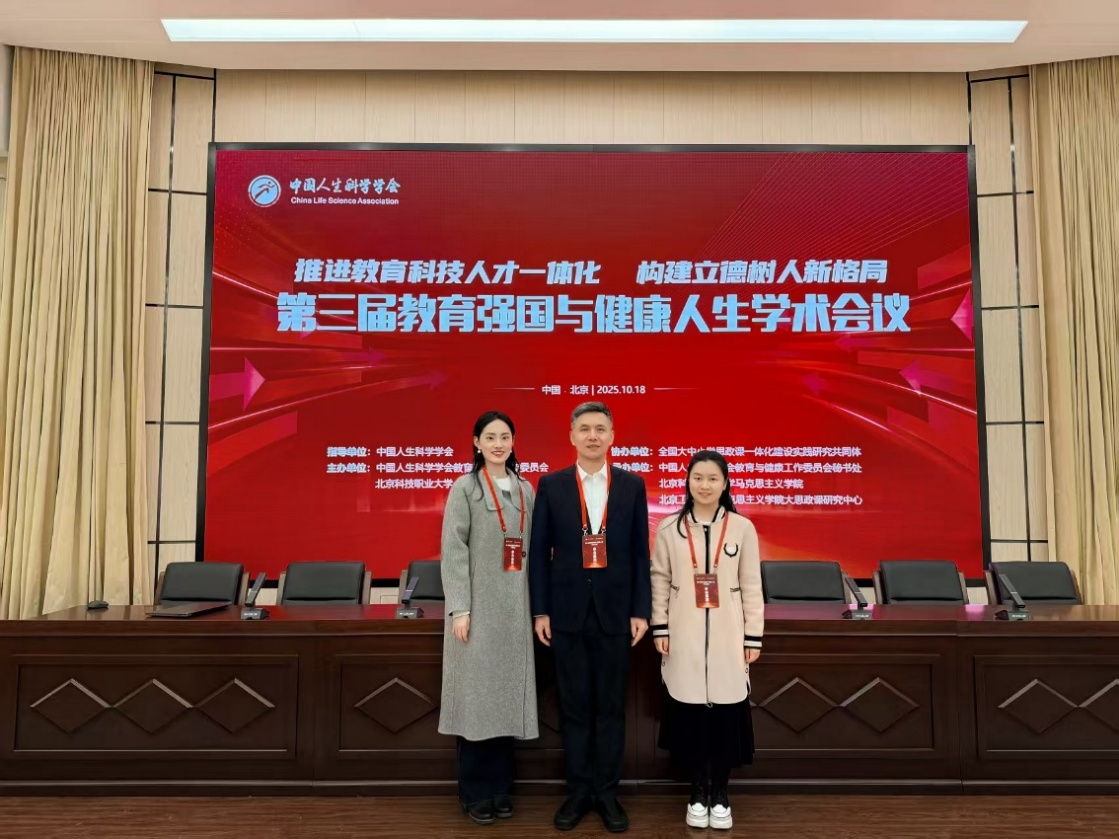 10月18日,第三届教育强国与健康人生学术会议在北京举行。公司徐子涵、吴相廷两位研究生提交了会议论文《教育强国下的就业思政》,并现场参会。在“生涯规划与产教融合”专题会场,参与开展《高质量就业服务体系中的“就业思政”建设》的主旨报告,从全教会和《教育强国建设规划纲要》对高质量就业的要求、职业选择与人生规划的价值观教育、“就业思政”的理论和实践四个方面进行了系统阐述,同时介绍了围绕价值观和校本文化开展的零年级计划、大学拔穗期启蒙和拔尖创新人才培育等实践,以及《拔尖创新人才价值观教育》教材、《大学拔穗期的价值引航》读本等成果。
