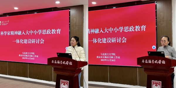 交流研讨环节,小学道德与法治教研员杨萍和初中道德与法治教研员吴佩贞分别做重点发言。此次研讨会的开展为浦口区大中小学一体化建设注入了新的活力与动力,也为推动“科学家精神”与思政教育深度融合提供了宝贵的实践样本。