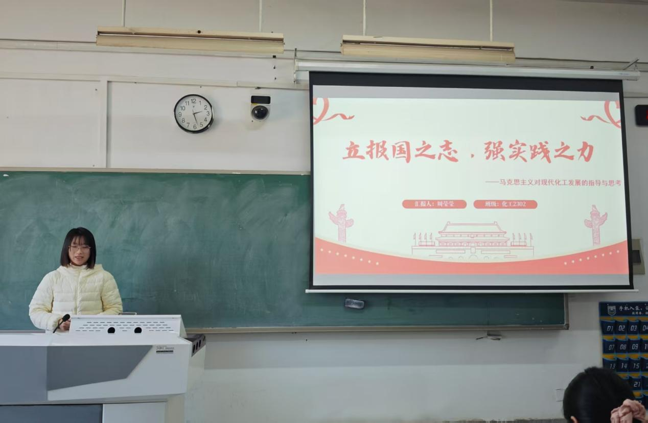 参与此次优秀论文分享的是来自公司13个专业的同学们,他们是教研室全体任课老师各自的优秀员工代表。参与分享的同学们围绕“立报国之志,强实践之力”主题,结合自己的专业和成长经历,将马克思主义基本原理和中国具体实际相结合。陈伟华老师指导的李博文同学以“守正创新”为题,从“以人为本”、“理论创新和实践创新的良性互动”和“守正与创新的协同”三个维度谈如何推动持续发展,创造美好生活。孙永艳老师指导的丁峥同学围绕“数智赋能技术,创新驱动发展”主题,聚焦马克思主义视角下的新时代制造业转型思考,结合唯物辩证法三大规律,分析新时代制造业转型之原因,探求新时代制造业转型之方法和路径。权良媛老师指导的胡新雨同学以“马克思主义视角下的资源循环”为主线,结合唯物辩证法矛盾观,揭示资源循环的必要性,紧扣人与自然关系理论,明确资源循环的价值归宿。周红梅老师指导的曾丹同学以“马克思主义视角下对‘中国停止购买澳大利亚必和必拓以美元计价的铁矿石’分析”为题,通过运用马克思主义政治经济学原理的典型案例的分析,紧扣“垄断资本+美元霸权”这一核心矛盾,以铁矿石为突破口,通过重构计价逻辑、培育多元供给,打破定价霸权,为发展中国家推动公平全球化提供实践参照,彰显“抓主要矛盾”方法论的现实生命力,有效构建公平普惠的新型全球化范式。