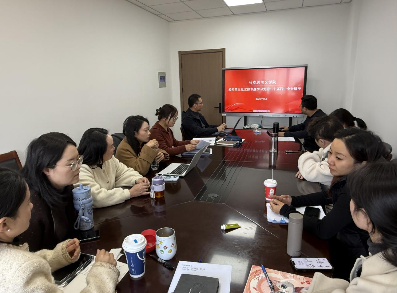 学习会上,党支部书记汪俞辰同志首先带领全体党员同志共同学习了《中共中央关于制定国民经济和社会发展第十五个五年规划的建议》专题内容。会议强调,学习好、贯彻好党的二十届四中全会精神是当前和今后一个时期的重要政治任务,党支部要通过“三会一课”、专题理论学习等方式深入推进全会精神的学习,坚持原原本本学、全面系统学,结合课程教学和学术研究,深刻把握思政课教师在全面推进强国建设、民族复兴伟业的时代使命。