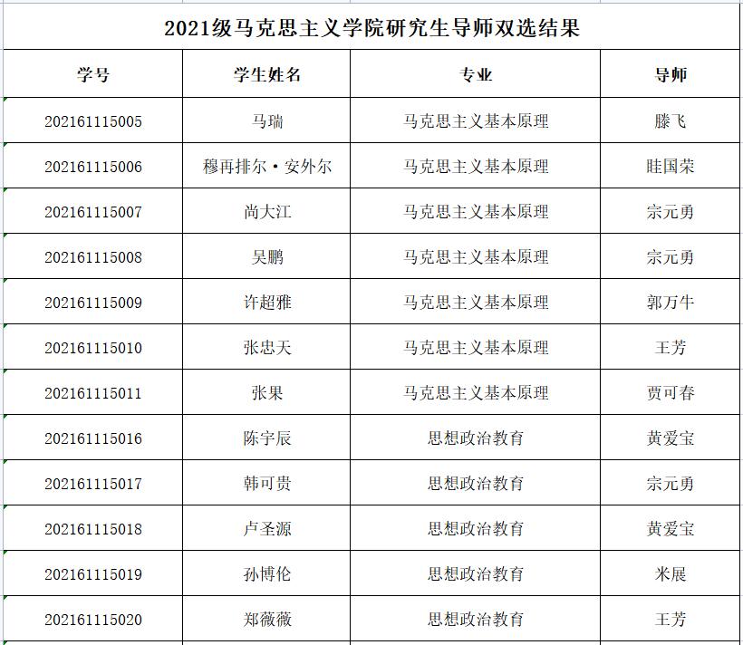 2021级太阳成城集团tyc234cc官网研究生导师双选结果