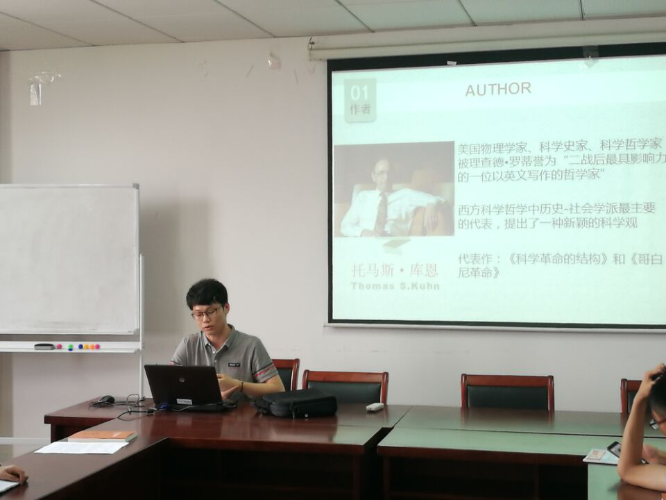 本次读书报告会由部分组成。第一部分由研一赵艳华同学带大家回顾上期读书报告《乡土中国内容。大家再次感受到中国的乡土。第二部分围绕托马斯·库恩的《科学革命的结构》展开讨论:研一张太权同学通过梳理本书的篇章脉络来进行解读,并联系思政研究方向进行延伸探讨;研一牛哲同学通过介绍本书的历史背景作者学派,结合现实举例由浅入深大家阐述书的核心内容。随后,大家根据同学们读书心得展开交流,发表观点。陶然老师肯定了大家以学科视角展开阅读的学习方法,提出问题同学们进行探讨同时提出希望同学们在今后的学习学会辩证地阅读书目,并且对今后的学习起到引导作用。黄爱宝老师总结了大家的观点,告诫同学们要读懂书,更要读懂书的本意,同时还要结合时代大背景读书。