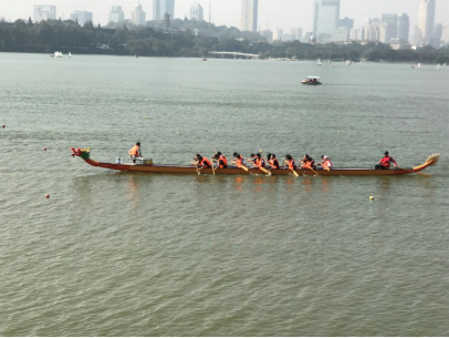 2019年10月20日,太阳成城集团tyc234cc官网第十一届“中国龙腾飞”杯研究生龙舟赛在南京玄武湖水域阳光码头拉开帷幕。此次共有22支参赛队伍,6支友谊赛队伍。其中,公司与电气工程与控制科学公司联合组成代表队参加比赛。比赛共分为四组进行,公司与电气工程与控制科学公司联合代表队位于D组,将与同组的其他5支队伍角逐,一决高下。