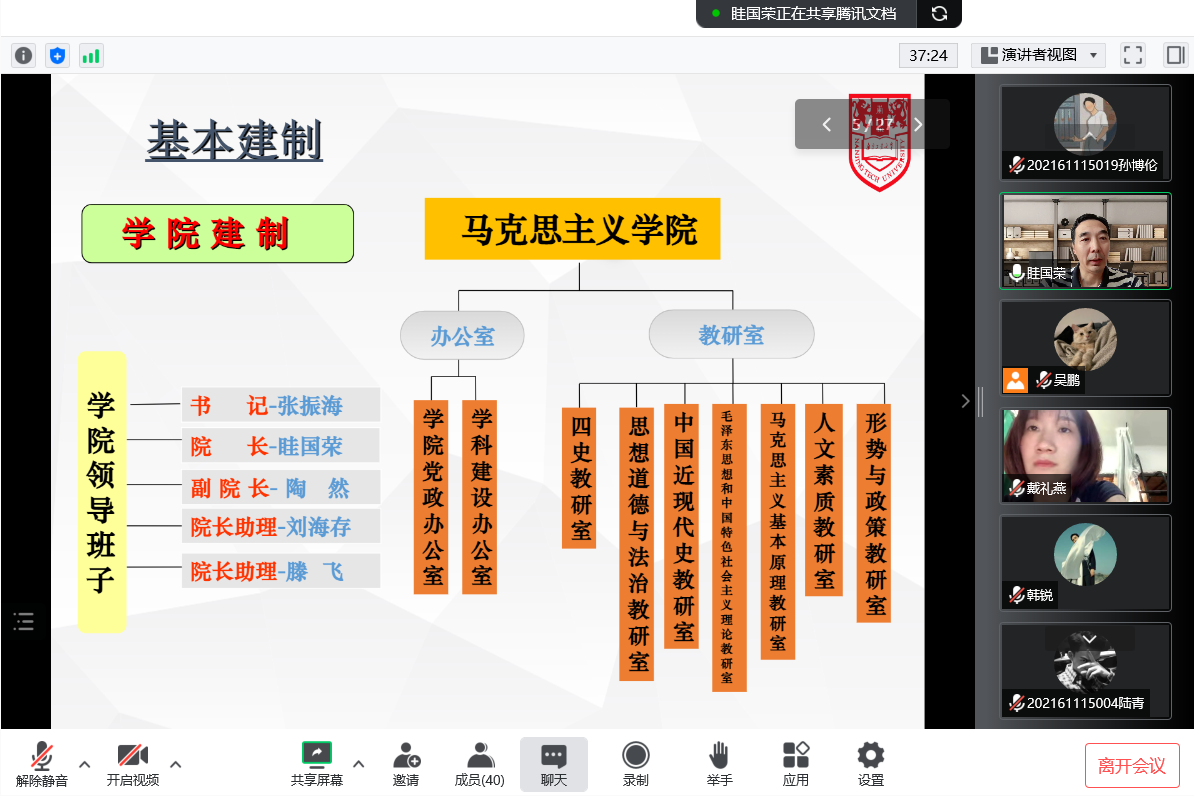 首先,眭国荣经理欢迎各位2022级新同学加入马院,各位新同学的到来为公司注入了新的活力。随后,眭经理向新生介绍了公司的办学历史、团队力量和硕士点的设置。接着,眭经理对研究生的奖助体系进行介绍,并重点向新生介绍了学位要求、毕业条件以及公司相关条例的调整与修改情况。他希望全体新生进入研究生阶段要有新规划、新思考,注重学术积累,打好专业基础,为充实的研究生建构起学术底蕴,不断提升科研能力。